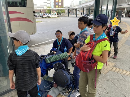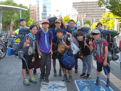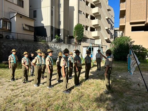 長期野営もいよいよ後半。 朝のセレモニーの後は、スカウツオウンサービス 午後は班活動を行います。 今日は、ハト班が富山市ファミリーパークへ、 ワシ班・ウマ班は海へ向かいます。 昨日、雄山へ登ったとは思えないほどスカウトたちは元気。 海を満喫しました。 夜は、肝試しをしようとスカウトから発案。 しれっと許可を出した指導者たちも、 こっそり先回りしてスカウトたちを驚かすなど、 最後の夜を楽しみました。 明日は、帰路につきます。 【8月6日:六日目】 長期野営最終日。 隊長より、優秀班・優秀スカウトの発表がありました。 優秀班、ハト班! 優秀スカウトは、班長・次長がWSJで不在でも よく班をまとめたSくん! 皆、それぞれ頑張りました。 荷物をまとめ、往路と同じ青春18きっぷで帰阪します。 長旅、お疲れ様 自宅に着くまでが活動です。 帰宅後は、しっかりと身体を休めましょう。 中学3年生のスカウトにとっては、 この活動がボーイ隊での最後の活動になります。 コロナ禍もあり、思うような活動ができない時期もありましたが、 大きく、大きく成長し、班をまとめてくれました。 今までの感謝を込めて♡ 【8月4日:四日目】