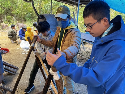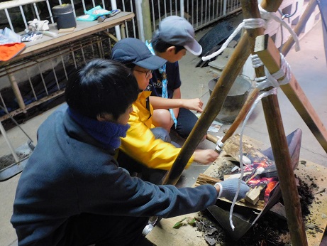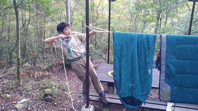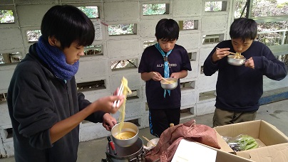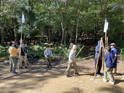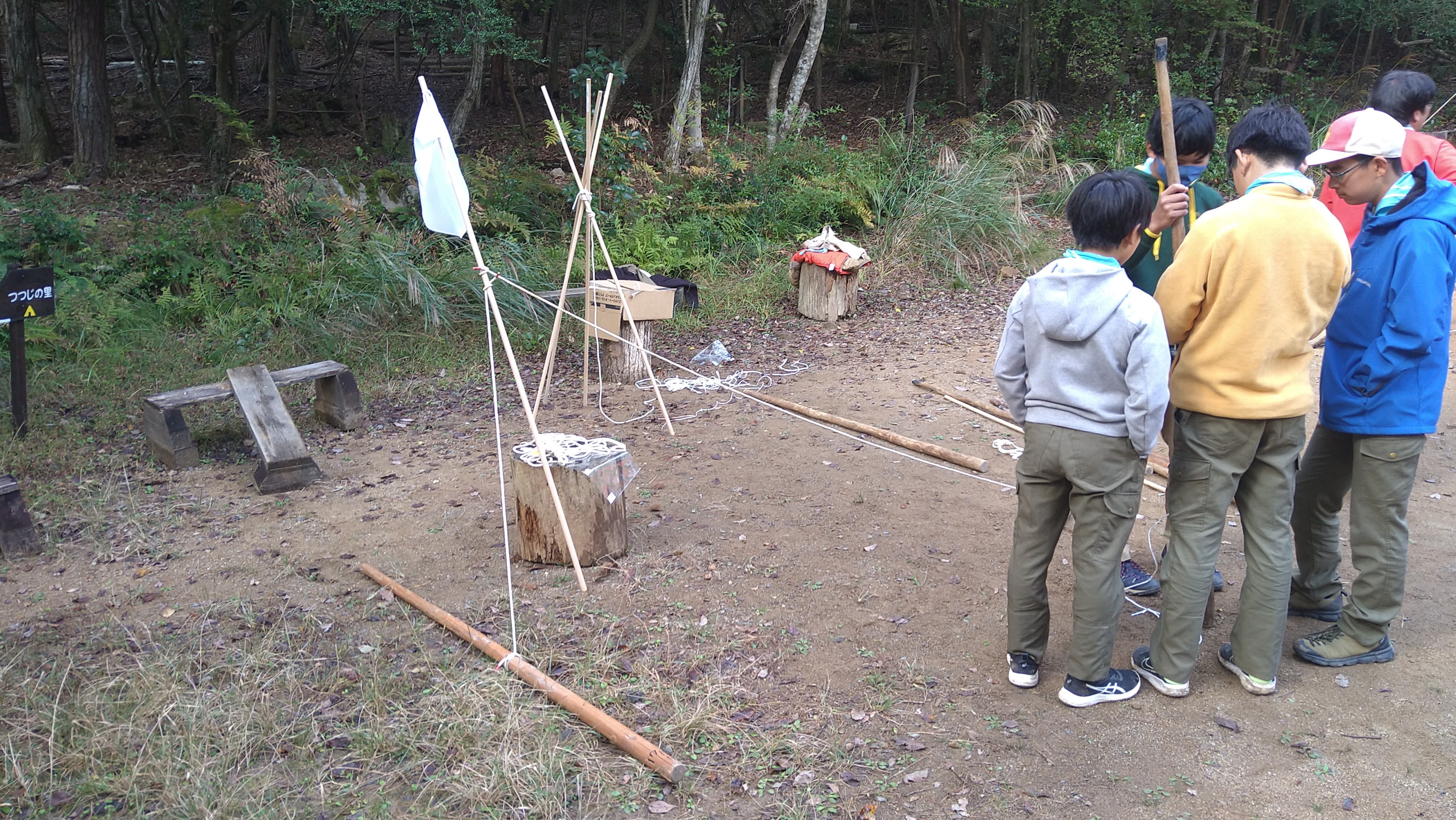今回の企画はハト班。 テーマは「キャンプ飯を見直す」 美味しい食事は活動の源です。 いつもより少し一食分の予算も上げ、 「これまでのキャンプ飯で最高に美味しい食事」を作ります。 【10月21日:一日目】 到着してテントを建てた後は、 立ちかまど作り。 だいぶ組み立てにも慣れてきました。 参加人数の都合で、今回は ●ハト・ワシ合同班 ●ウマ班 のふたつに分かれました。 ハト・ワシ合同班のチョイスは「焼肉」 ウマ班のチョイスは「海鮮丼」 (生ものの扱いには十分気をつけましょう) 確かに 「これまでとは違った」 「最高に美味しい」 キャンプ飯ですが・・もう少しひねりも欲しいところですねぇ(´ω`*)。 今回のキャンプ場にはピザ窯もあったのですが、今回は出番なし。 定番の焼きマシュマロの焼き具合にも、 焦がす派・溶かす派と各自こだわりが( ´艸`) 食事の後は火を囲んで 25WSJに参加したスカウトに、 世界ジャンボリーの感想を話してもらいました。 現ボーイ隊の中一以下のスカウトたちは 次のポーランドでの世界スカウトジャンボリーに 参加するチャンスがあります。 たくさんの国の人々が一同に会し 交流を楽しむ唯一無二の経験。 これは例え留学しても得られない経験です。 ぜひチャレンジして欲しいものです。 【10月22日:二日目】 さわやかな朝です。 10月ともなると、 シュラフやテントも夜露にぬれてしまいます。 しっかりと干しておきましょう。 朝食の後は、班旗立てを行いました。 ハト・ワシ合同班 vs ウマ班 どちらがの方が高く立てられるでしょうか 勝者、ウマ班! 合同班は、敗因の分析中でしょうか。 その後は各自進歩の確認を行い、昼食です。 ワシ・ハト合同班は「秘伝レシピのうどん」 ウマ班は「スープから作るラーメン」 麺類は身体が温まりますね。 昼食後はセレモニーを行い、千里山へ戻ります。 今回の優秀班はウマ班。 班旗立てもさることながら、 ラーメンをスープから作ってみるという 『チャレンジング』な姿勢も評価されたようです。 キャンプ地は朝・晩冷え込むようになってきました。 体調に気を付け、しっかり装備した上で 楽しいキャンプを続けていきましょう。 PR 新班体制で挑む初めての活動は、