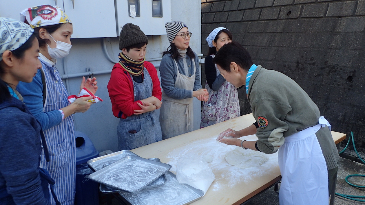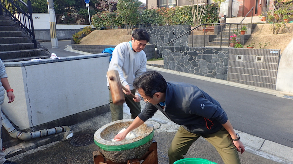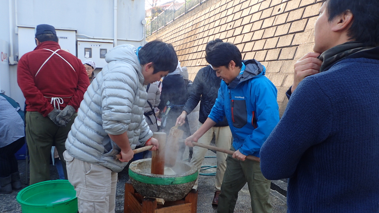 保護者の方にもお手伝いいただいて、子供達のお腹いっぱいお餅を振舞います。