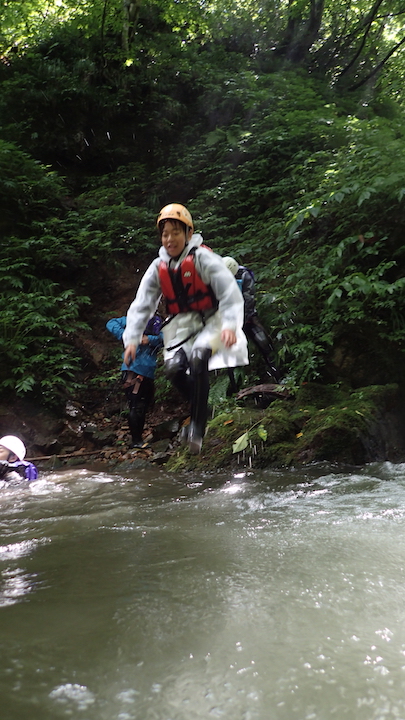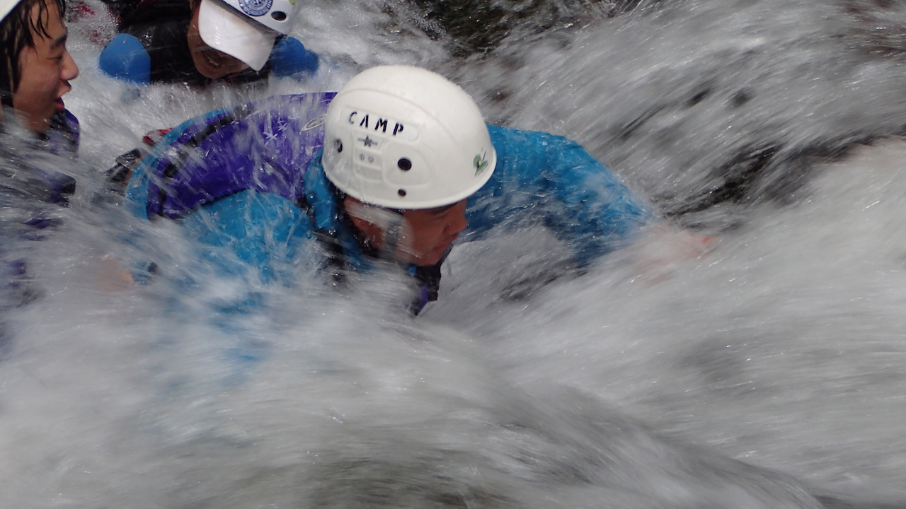 前日の豪雨で水の量が多く、流れも速くてスリル満点。しばらくその様子をお楽しみください 笑