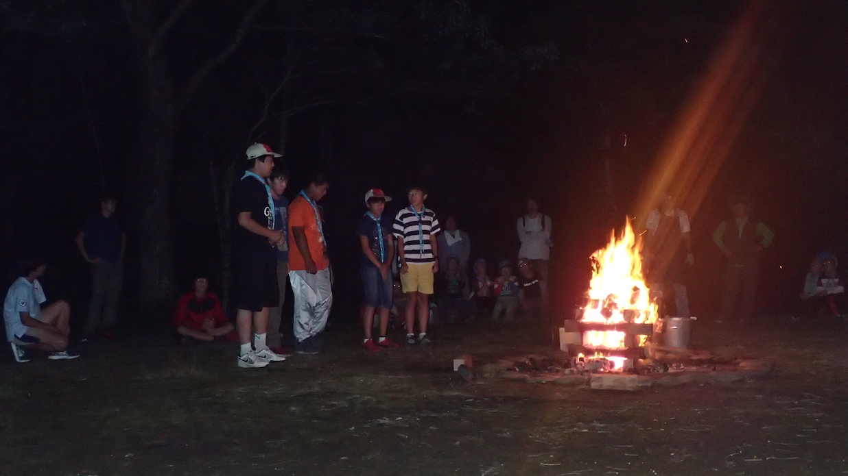 夜はビーバー隊、カブ隊、ベンチャー隊、ローバー隊と合同でキャンプファイヤーを楽しみました。