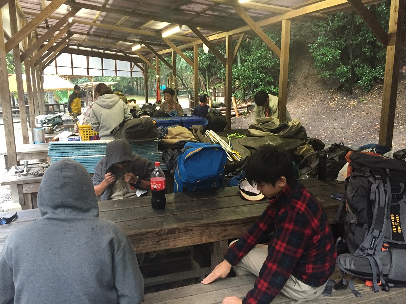 ◆翌朝は、予報通り雨でした。1名のスカウトを除き、いつものように寝坊です。