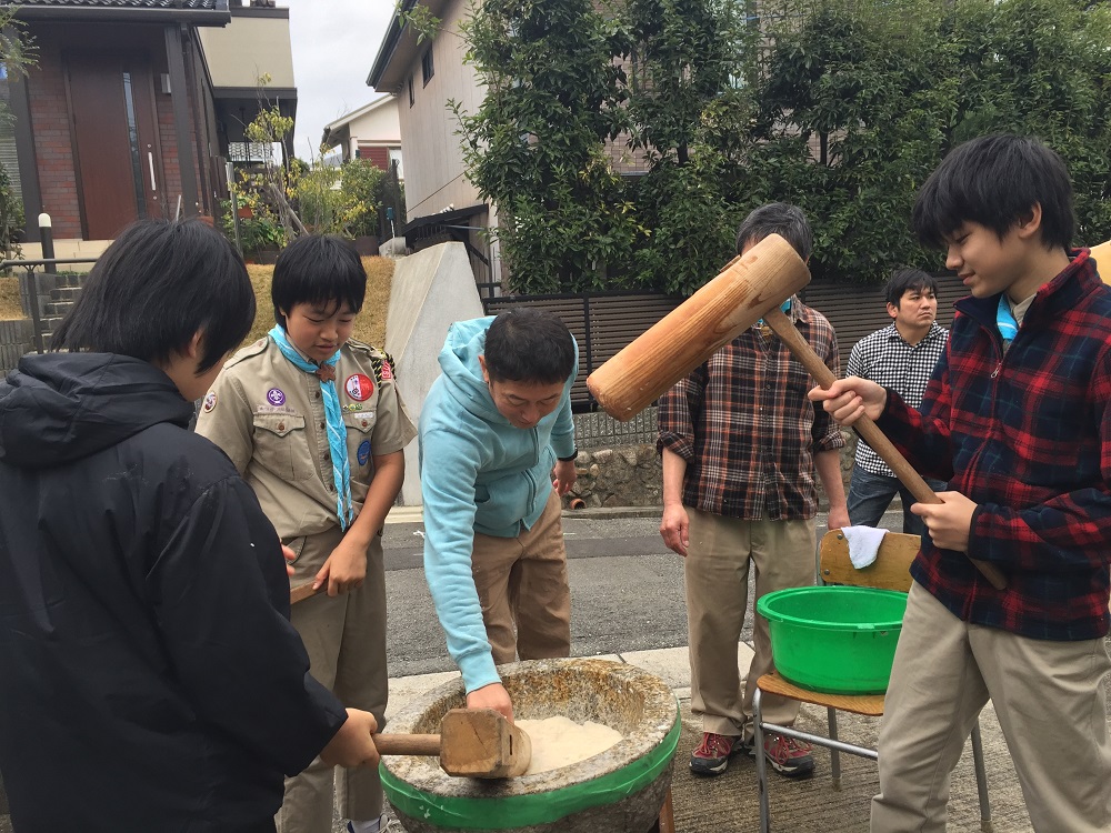 ・BS隊の有志3名が餅つきに参加。