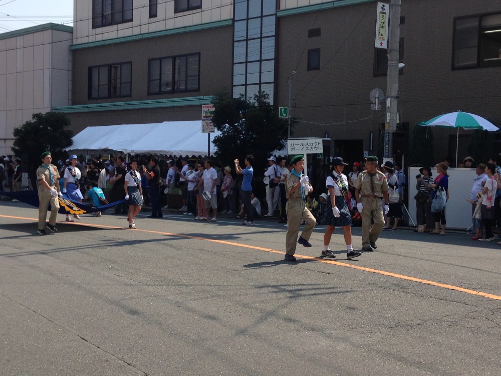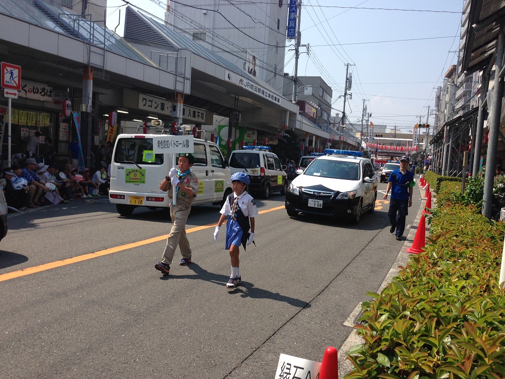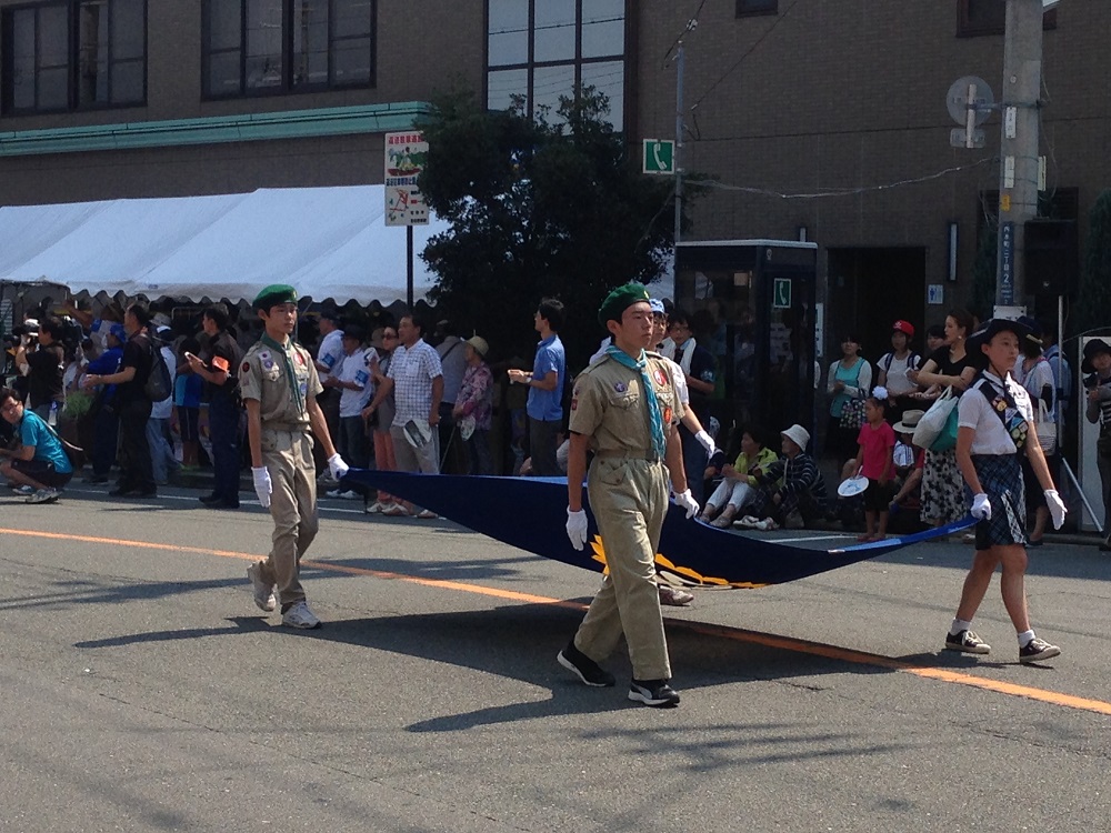 《1》活動内容:吹田まつり奉仕 《2》活動場所:高浜神社からJR吹田駅周辺 《3》活動日:平成27年8月2日(日曜日) 《4》集合場所と時間:美和遊園 正午 《5》解散場所と時間:高浜神社 午後4時 《6》持ち物:    ①お茶 《8》その他 3名(任意) ◆今回の奉仕活動は、吹田まつりの奉仕(地区主催)です。 ◆今年も猛暑日の中での奉仕活動となりました。 ◆皆で集まって服装点検、歩き方、旗の持ち方、そしてプラカードの持ち方を教わります。