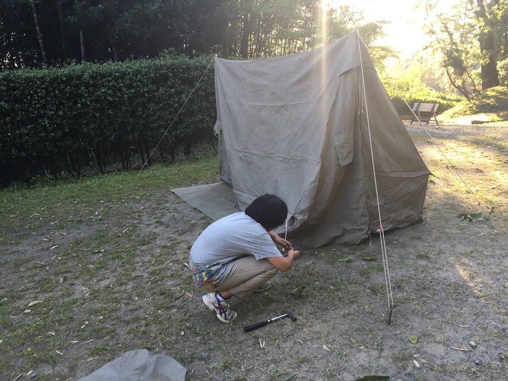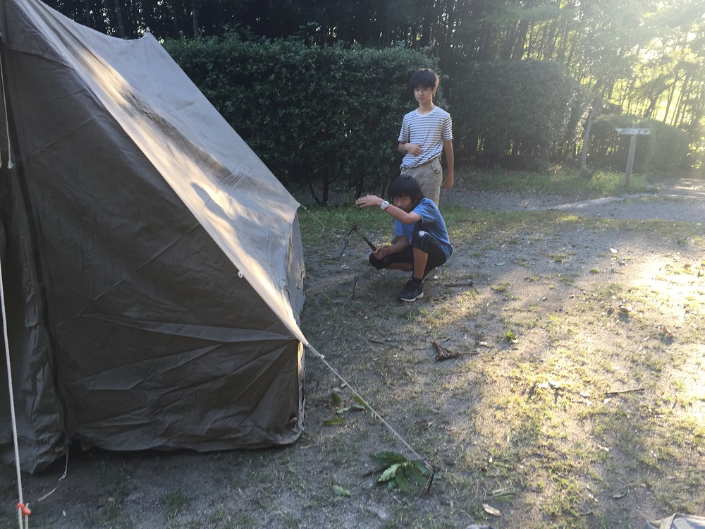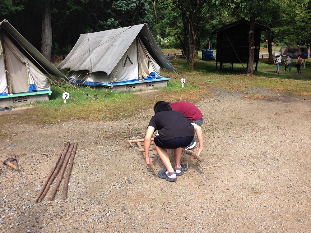 ◆設営ではテントを建て、立ちカマドを製作しました。