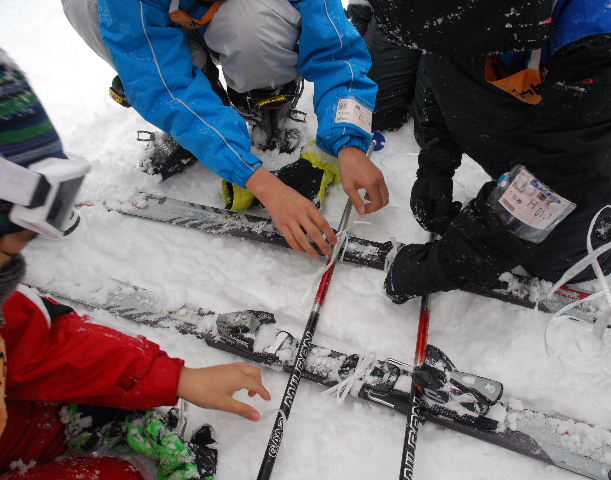 スキー板にストックを固定する(同)