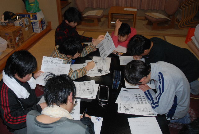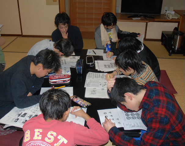 夜は宿舎で学科試験(同)