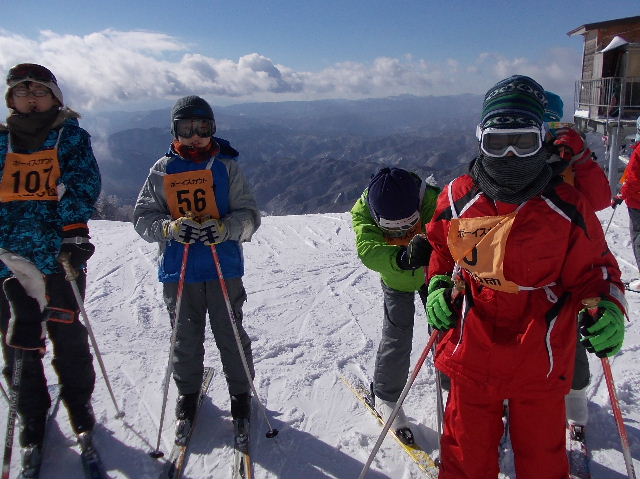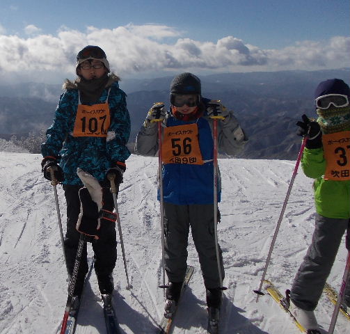 朝のセレモニー時の気温は氷点下1.8度。朝から青空が広がり、絶好のスキー日和。朝食後、スキー場へ。準備運動後、全員で記念撮影。BS隊、VS隊は2班に分かれ、自由滑走。頂上(標高1904m)からは南西の方角に御嶽山が見える。踏むとキュキュと音がするほど良質の雪で、午前11時の終了時刻までスキーを楽しんだ。