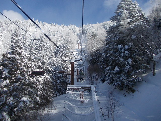 山頂へ続くリフトから見た光景。一面の銀世界に息をのむ(同)