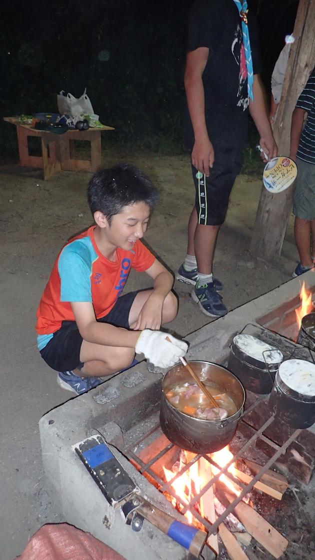 暑い中でのキャンプになりましたが、スカウトたちは暑さの中での楽しみ方を見つけ、いろんな経験をして精神的にも技術的にも一回り大きくなったと思います。