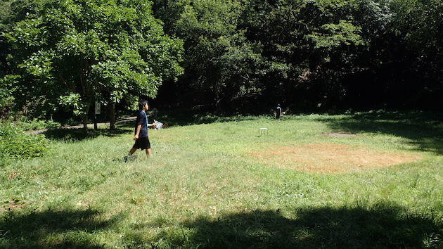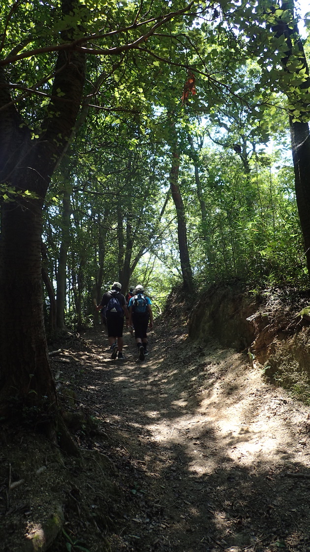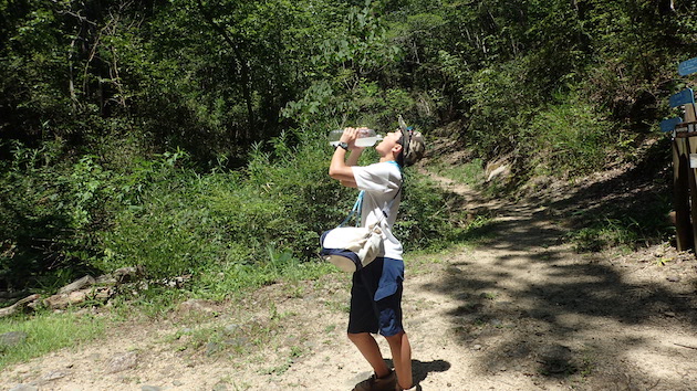 いつもなら大したことのない距離が、炎天下では水分と体力が奪われます。こまめに取った休憩中にも水分補給は欠かせません。しかし暑かった!