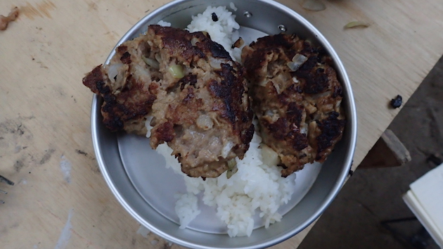 こちらはハンバーグ?見た目はともかく美味しくできていました。