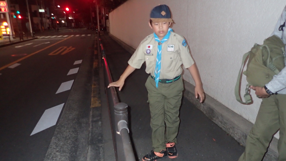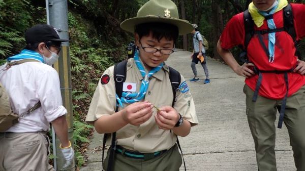 途中でアスファルトの上の気温40度の表示に多くのスカウトの心が折れたようですが、みんな最後まで頑張りました。