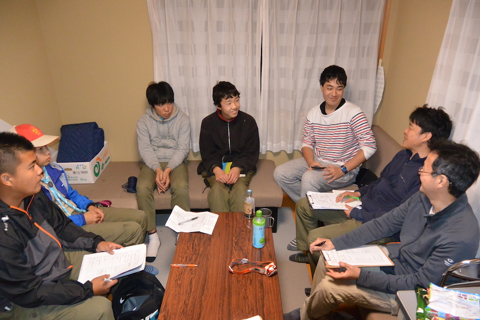 グリーンバー会議(班長次長会議)では上級班長のベンチャースカウトから優しく?指導が入ります。