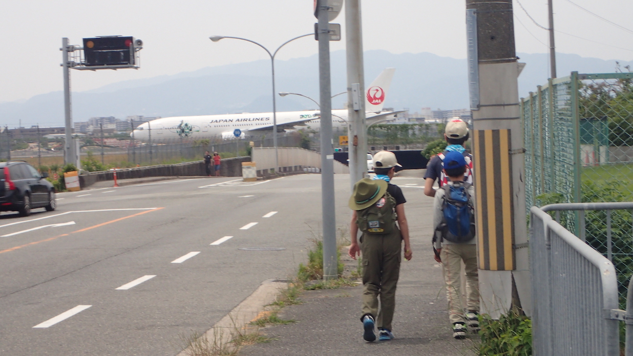 4月に上進したスカウトにとっては初めてのキャンプです。小学6年生は小さな体に大きなザックを背負って移動します。